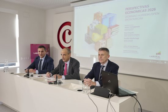LABORAL Kutxak Euskal Autonomia Erkidegoari eta Nafarroako Foru Erkidegoari buruzko 2026rako aurreikuspen ekonomikoak aurkeztu ditu. Ikerketa Departamentuko zuzendari Joseba Madariagak eta Negozioaren Garapen Arloko zuzendari Ibon Urgoitik agerraldia egin dute lehenik Bilbon eta ondoren Iruñean. Azken aurkezpen honetan, Nafarroako Lurralde zuzendari Javier Cortajarenak ere parte hartu du. euskadiko-2026ko-aurreikuspen-ekonomikoakfrom LABORAL Kutxa nafarroako-2026ko-aurreikuspen-ekonomikoakfrom LABORAL Kutxa