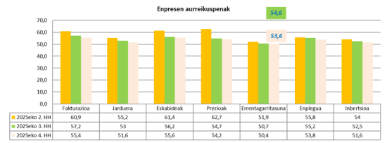 Konfiantza-indizea 53,6an kokatu da. Hau da, aurreko hiruhilekokoa baino txikixeagoa (54,6koa izan baitzen). Beraz, enpresek ikuspegi baikorra dute ekonomiaren bilakaerari buruz, 2025eko laugarren hiruhilekoari begira. Indizearen balioa 50etik gorakoa izateak jarduera hedatzen ari dela adierazten du. Gainera, balioa handiagoa da eurogunean lortutako baino (51,2ko datua lortu zen irailean), eta Estatuan lortutakoaren antzekoa (53,8ko datua, […]